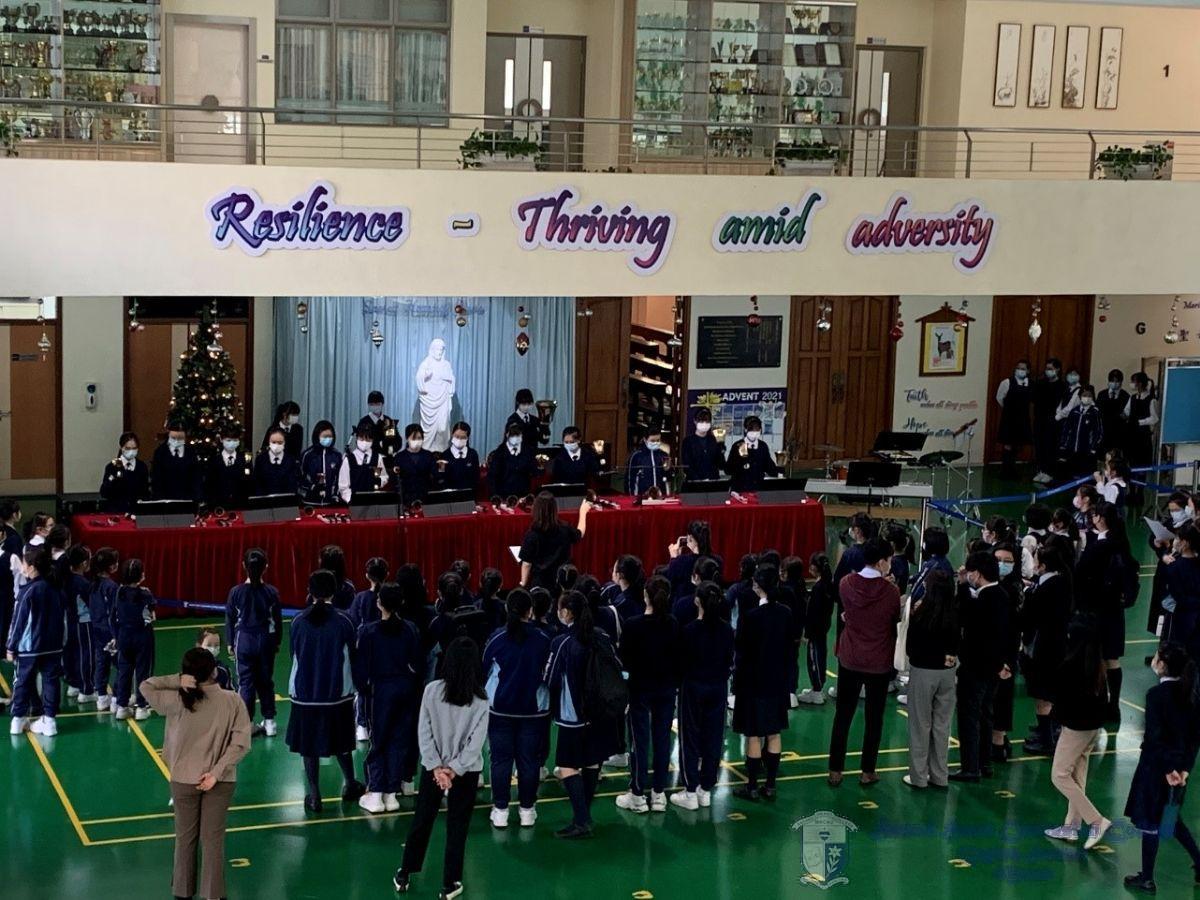 During the lunch breaks, our primary and secondary students gathered at the playground to enjoy the music of the season. The performing groups include the school choir, handbell team, wind band, and also the school orchestra. Moreover, there were also performers from the primary, including the choir, string ensemble, and wind ensemble. This year, there were new forms of performances: the school choir performed with wind band, and the school orchestra performed with fascinating formation. As the joyous music was heard at every corner of the school, everyone surely felt the warmth of this special and beautiful gift and the unlimited blessings for a merry Christmas.