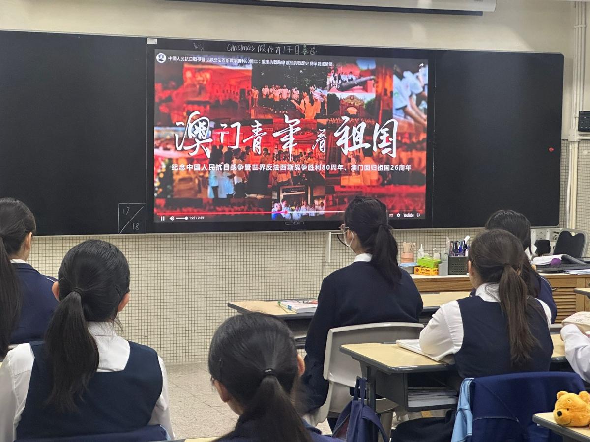 學生觀看「重走抗戰路線 感悟抗戰歷史 傳承愛國情懷」短片