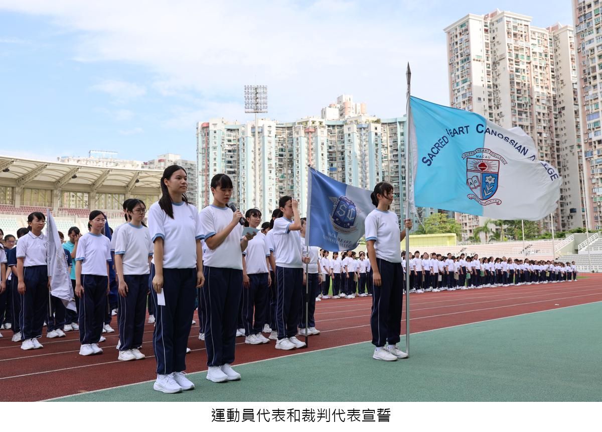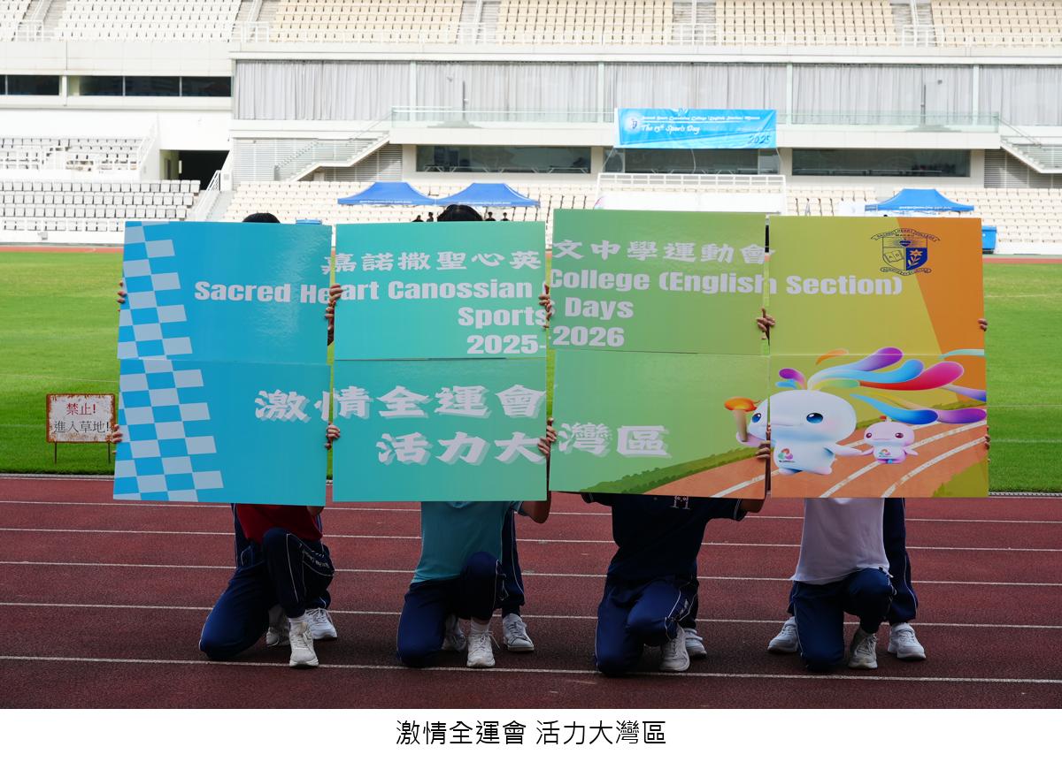 為慶祝第十五屆全國運動會在粵港澳舉行,本屆校運會開幕式特別設計了簡單而隆重的「薪火接力跑」儀式和「激情全運會 活力大灣區」表演,祝願全國運動會圓滿舉行,亦勉勵本校學生在比賽競技中把聖心人的「運動家精神」傳承下去。