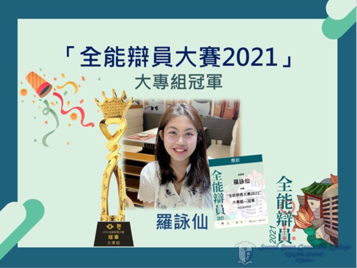 F5B Wandy Chao取得「全能辯員大賽2021」中學組初賽傑出辯員獎