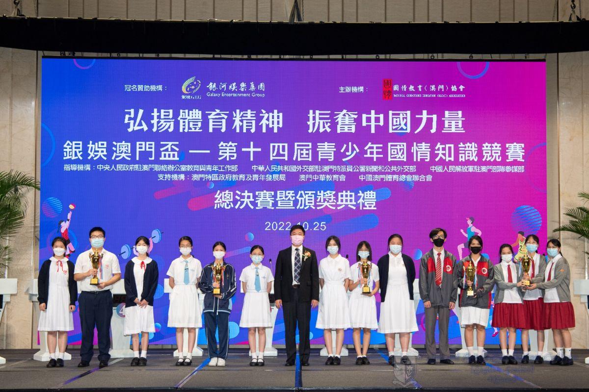 由國情教育(澳門)協會主辦的「銀娛澳門盃——第十四屆青少年國情知識競賽」總決賽暨頒獎典禮於10月25日在澳門舉行。今年競賽以「弘揚體育精神,振奮中國力量」為主題,吸引澳門共23所中學、6所大學參與。
