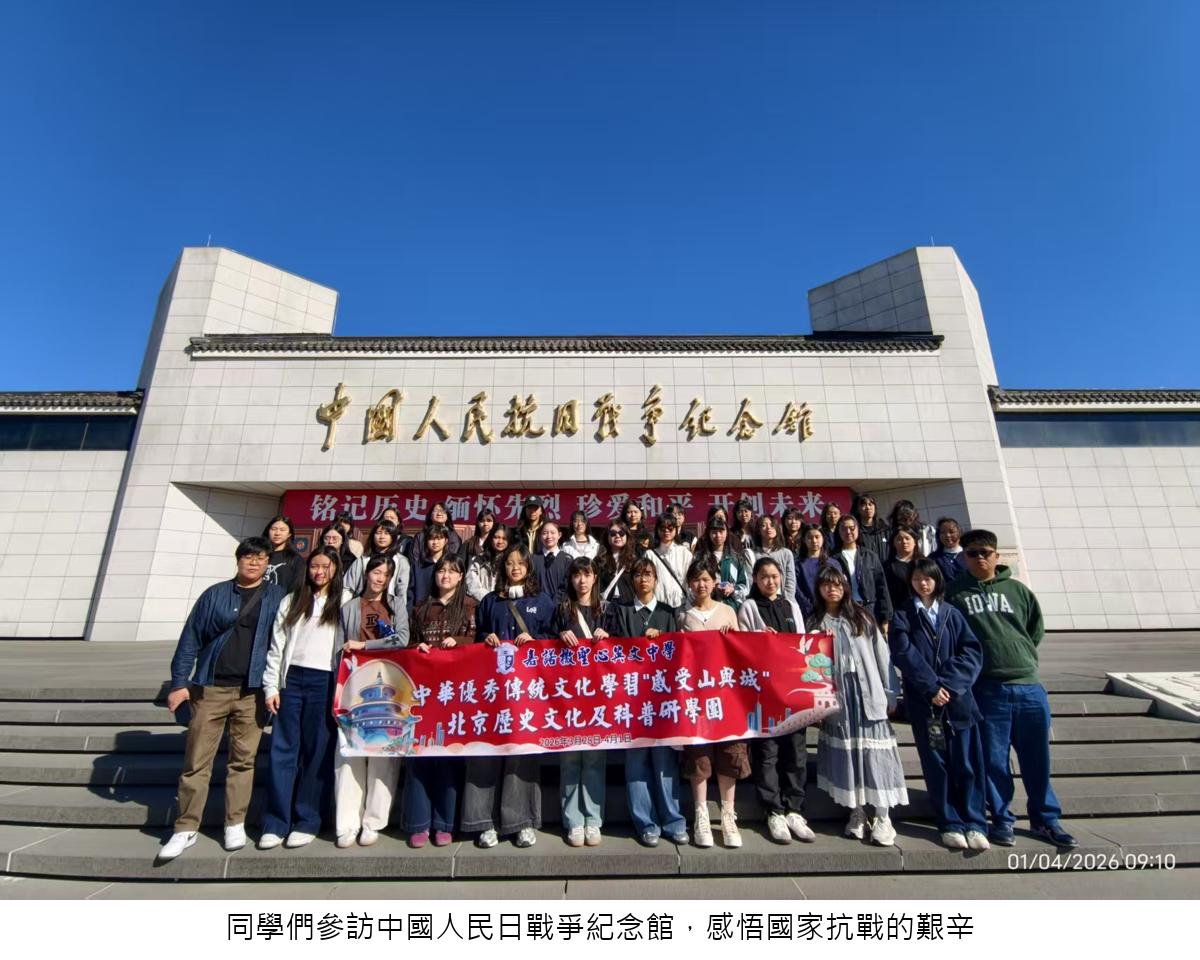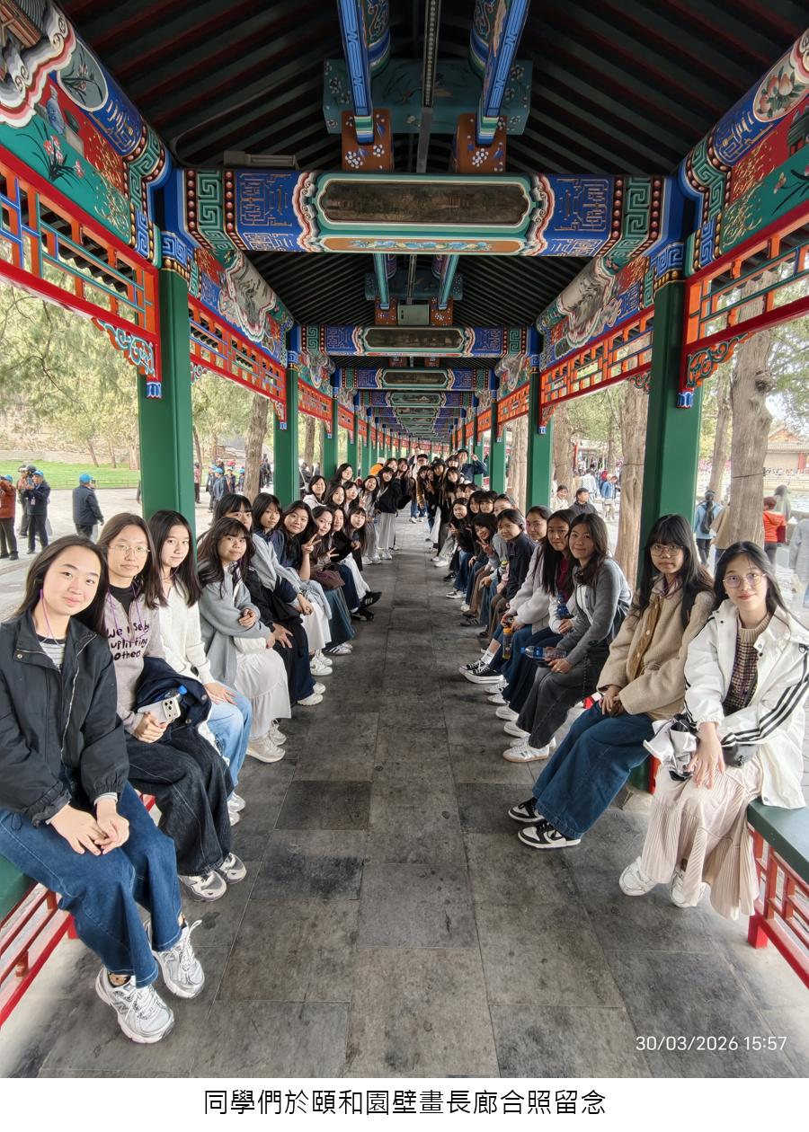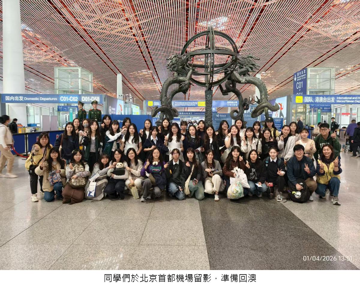 為了讓學生走出課室,實踐「讀萬卷書,行萬里路」的教育理念,並配合特區政府提升青少年對祖國歷史文化認知的政策,本校於2026年3月28日至4月1日組織了高一及高二級共38位學生,前往北京展開為期五天的「感受山與城 —— 北京歷史文化及科普研學團」。在五天的深度文化洗禮中,同學們實地考察古都文脈,感悟家國情懷,收穫甚豐。