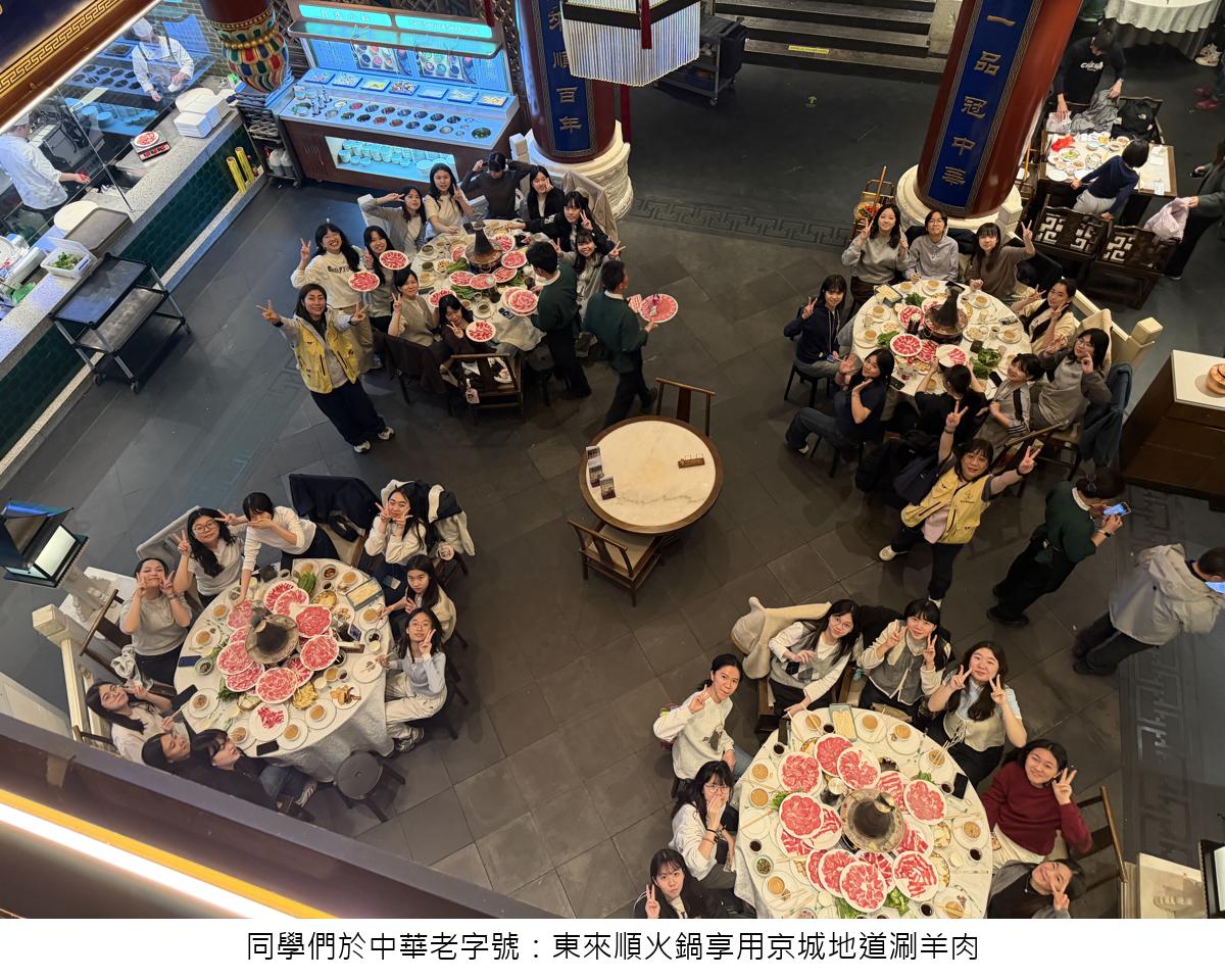 次日,同學們懷著崇敬的心情步入故宮博物院。在宏偉的明清皇家建築群與專業的文化專題導賞下,同學們彷彿穿越時空,領略古人的營造智慧與嚴謹美學。午後,師生轉往天壇公園,近距離觀察祈年殿與回音壁,對古人「天人合一」的哲學思想讚嘆不已。當傍晚霞光灑在天安門廣場,同學們仰望巍峨的人民英雄紀念碑,在肅穆的氛圍中緬懷先烈,深刻體會到今日盛世和平的來之不易。