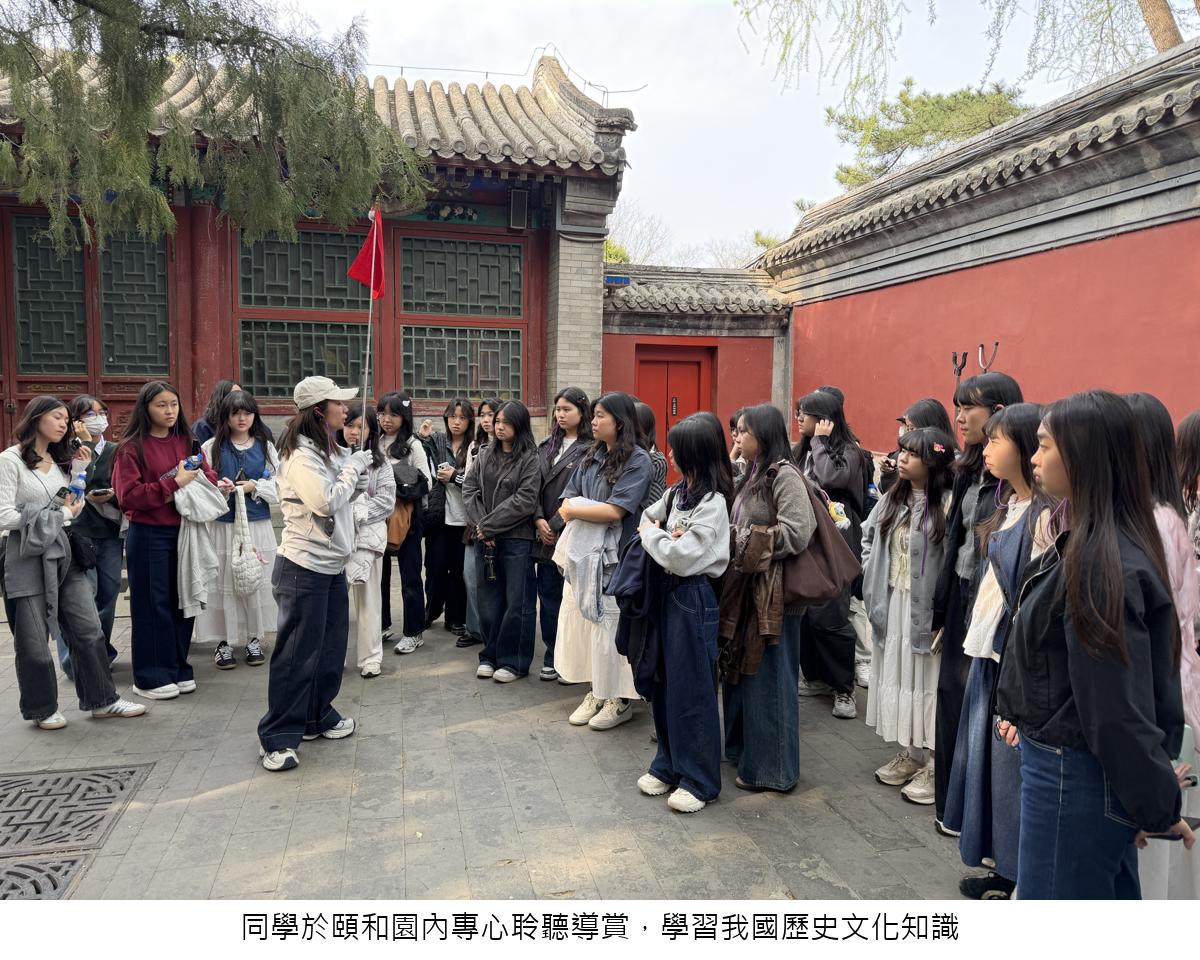 第三天,行程在玉淵潭公園的櫻花海中展開。同學在欣賞春意盎然的景致之餘,更主動探討城市生態保育的實踐。隨後前往圓明園遺址公園,面對斷垣殘壁,同學在愛國主義教育專題導賞中反思戰爭的創傷,深切感悟民族復興的意義。午後漫步於頤和園的昆明湖畔與壁畫長廊,細味古典園林美學的極致體現,提升了文化鑑賞素養。