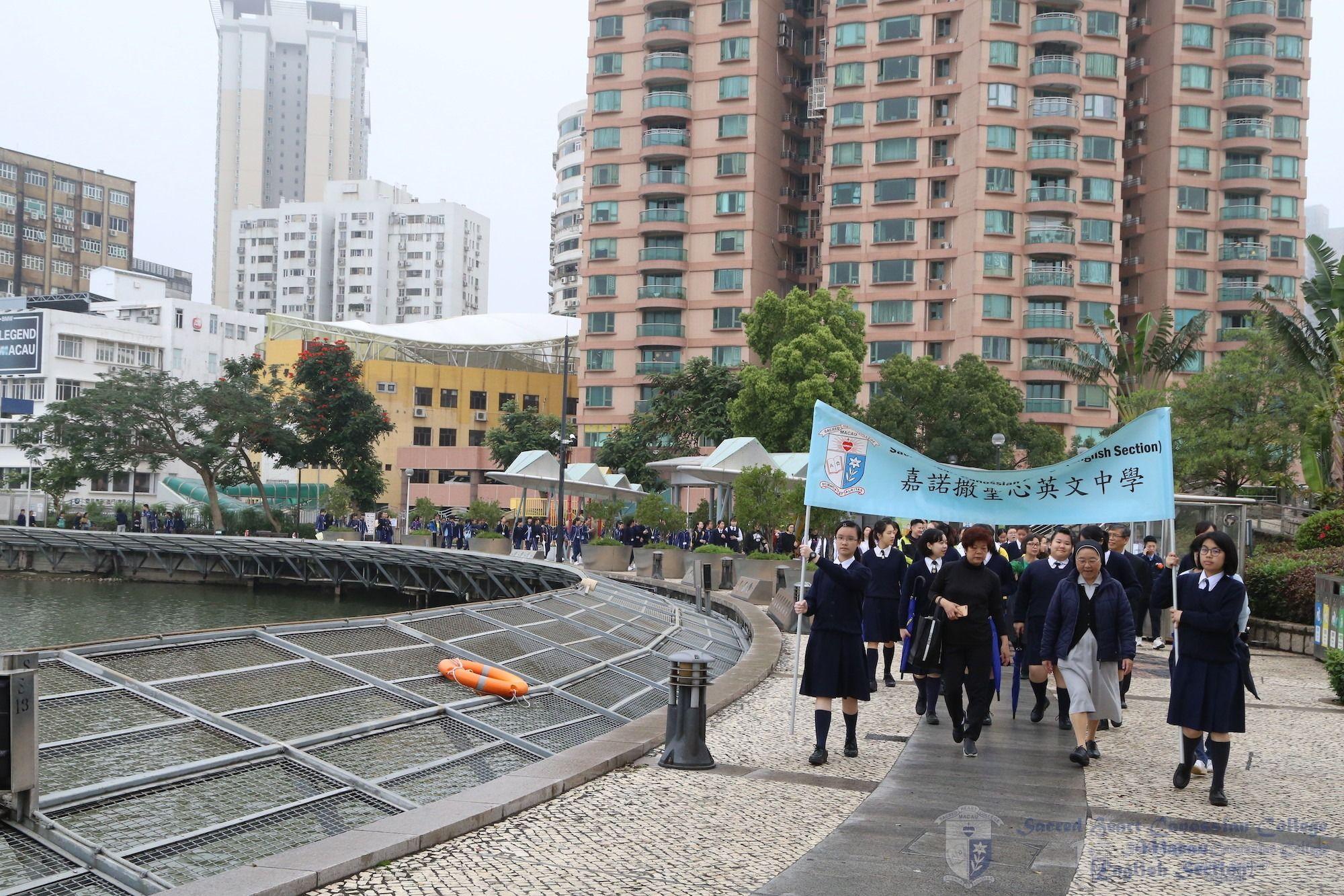 今年嘉諾撒聖心英文中學的慈善步行所籌得的善款為澳門幣538,728.1元正,連同去年10月舉行的慈善大抽奬籌得的澳門幣98,485元正、便服日籌得的澳門幣128,665元正、明愛獎券籌得的37,850澳門幣元正(已於2018年11月轉交明愛)、合共澳門幣765,878.1元正。扣除大抽奬和慈善步行的成本,我們會捐出澳門幣66萬作慈善用途,而其餘的會作為聖瑪大肋納社會工作組的日常開支費用。