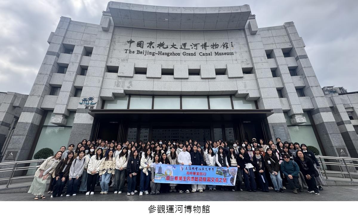 旅程最後兩天,同學們轉赴杭州,漫步西湖景區,乘船欣賞湖光山色;其後又走進杭州低碳科技館,了解綠色能源與可持續發展理念;接著參觀運河博物館,認識京杭大運河的千年歷史與水利智慧。最後,同學們遊覽了河坊街,體驗江南市井風情,品味傳統手工藝與地道小吃,為旅程畫上圓滿句號。
