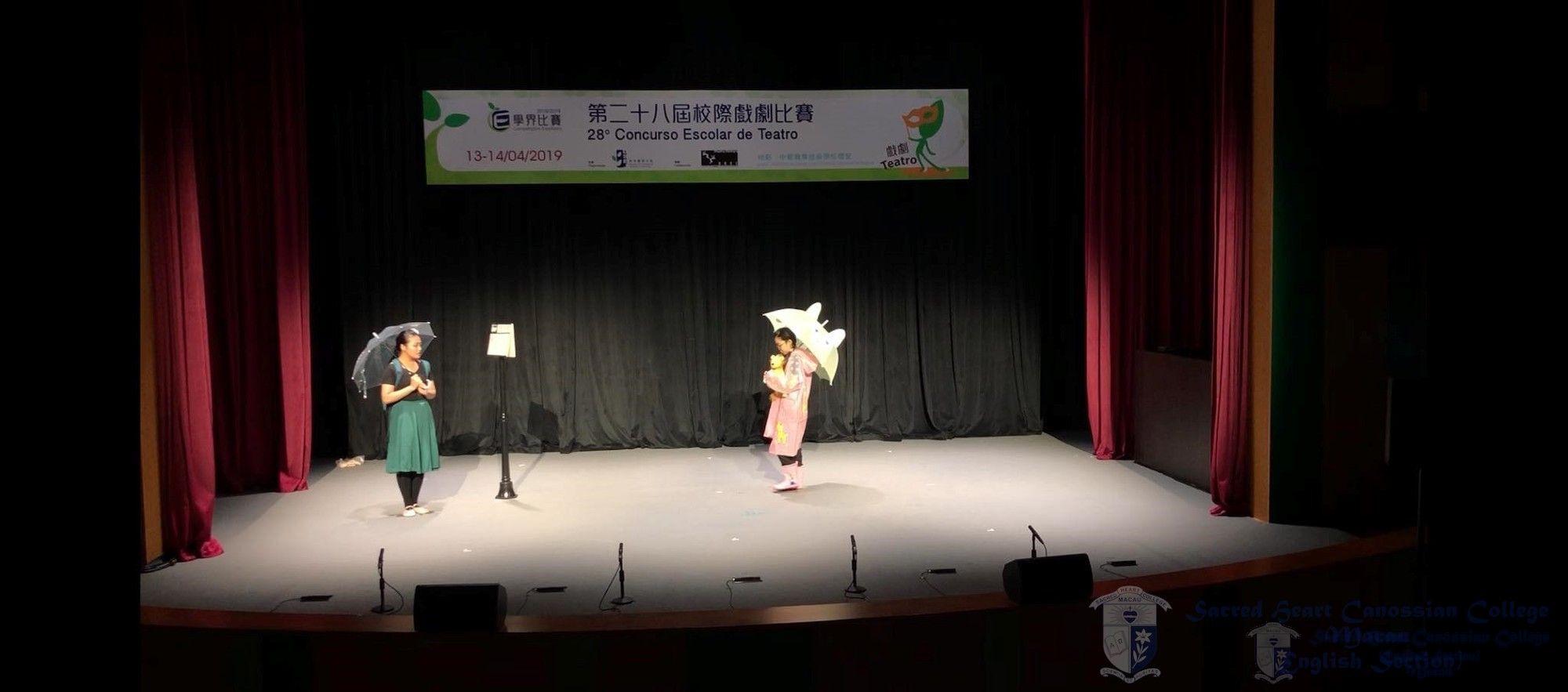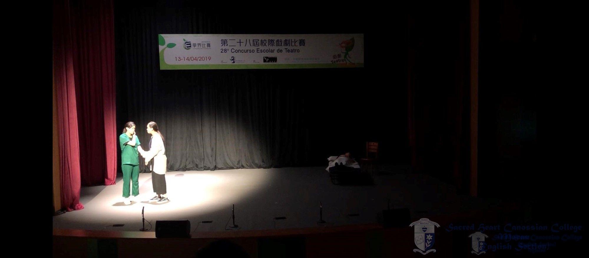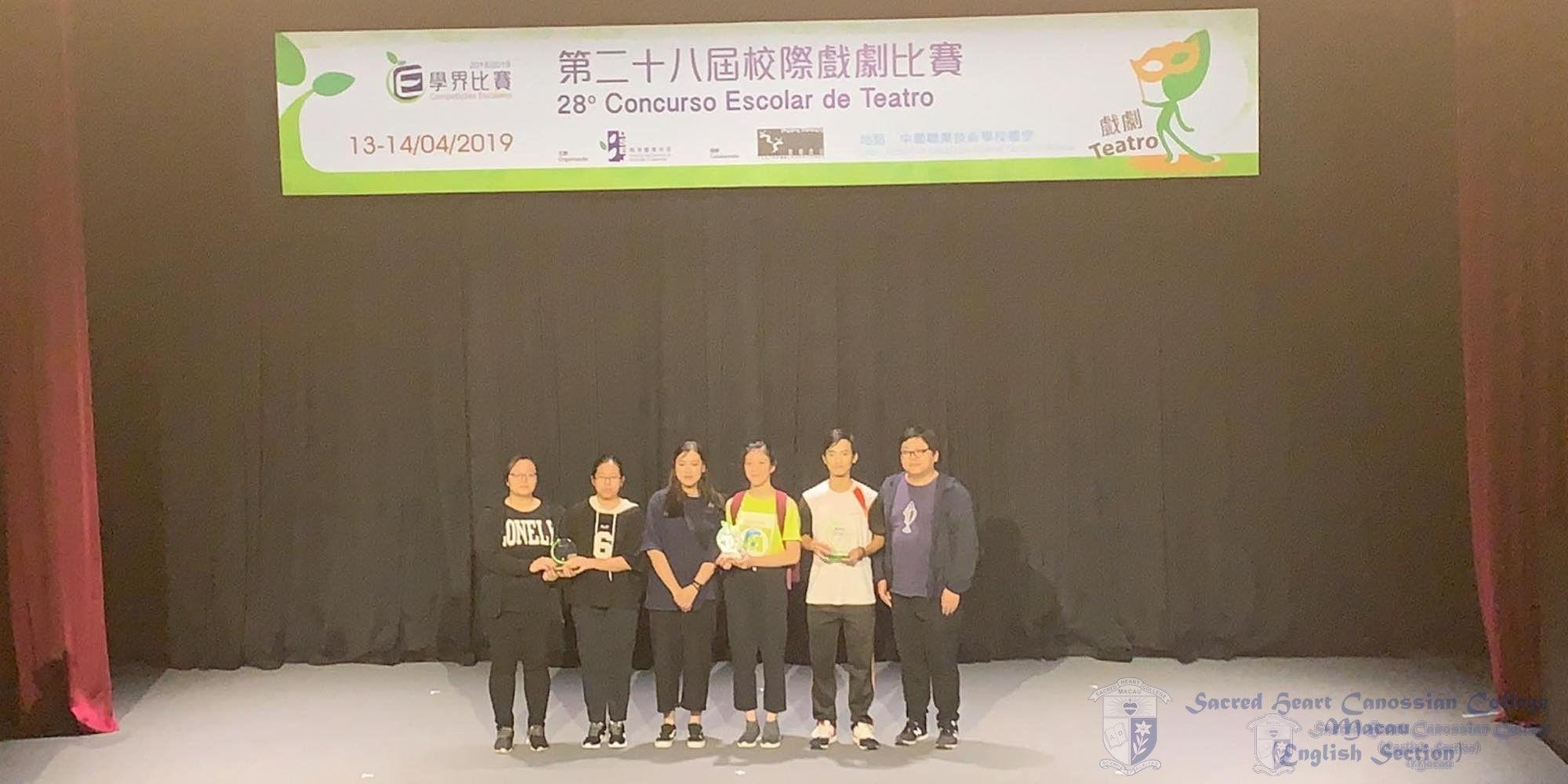 為豐富學生的課餘活動,培養學生對戲劇的興趣,促進各校的戲劇交流,從而提高學界的戲劇水平,我校話劇社於2019年4月14日參加了由教育暨青年局主辦、戲劇農莊協辦「第二十八屆校際戲劇比賽」並取得乙等獎。多謝校長以及各位的支持和鼓勵,我們會汲取經驗,希望來年取得更好的成績。