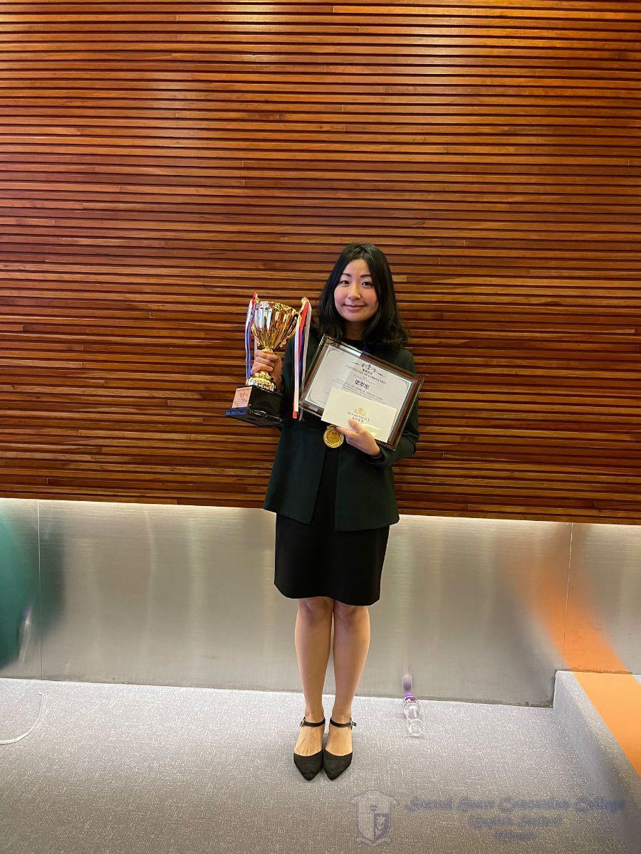 經過激烈比賽,本校師生最終同獲佳績。中五乙班關燕婷Karen Guan在少青組取得優異獎,而梁翠彤老師Ms Shirley Leong則在青年組勇奪冠軍。