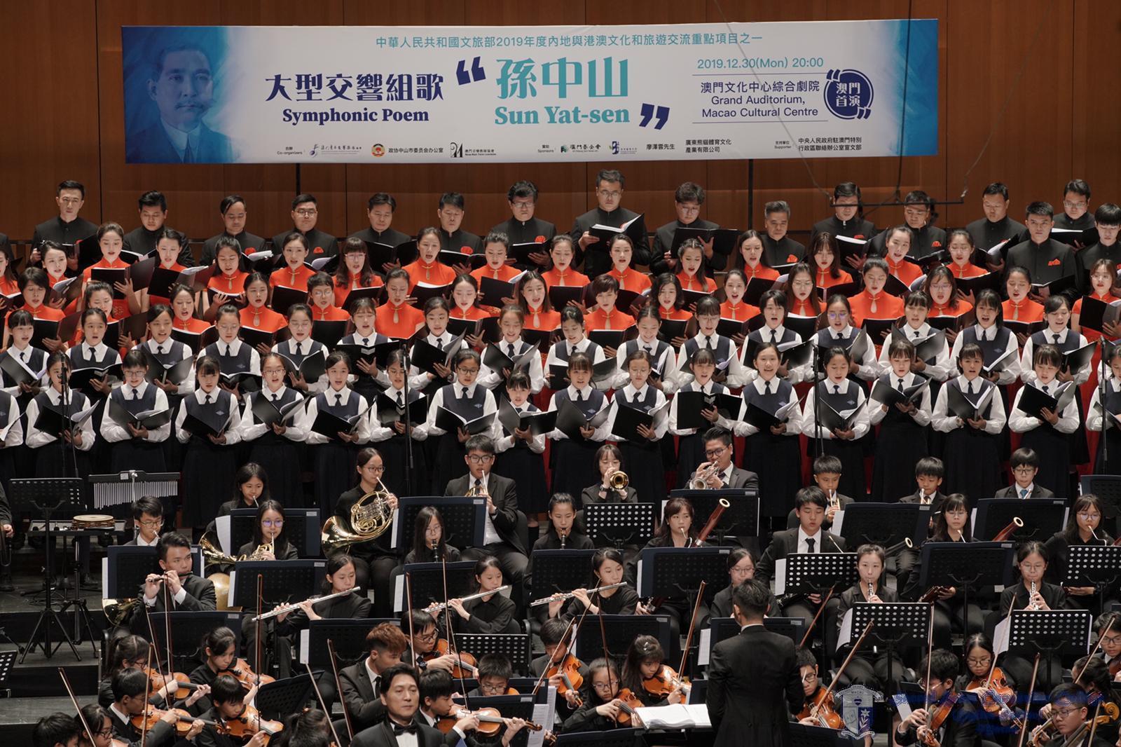 澳門青年交響樂團協會、政協中山市委員會辦公室及澳門音樂教師協會合辦的大型交響組歌《孫中山》,於2019年12月30日晚上八時假文化中心綜合劇院舉行澳門首演,在澳門回歸祖國二十周年之際,《孫中山》在澳首演,寓意深遠,