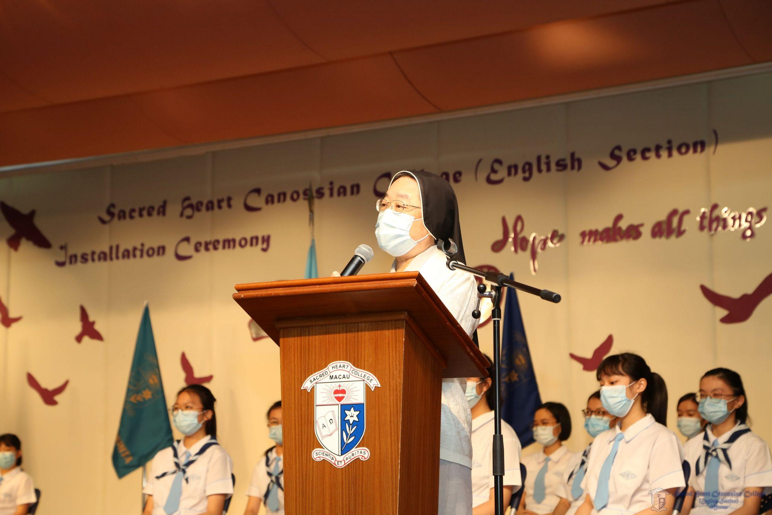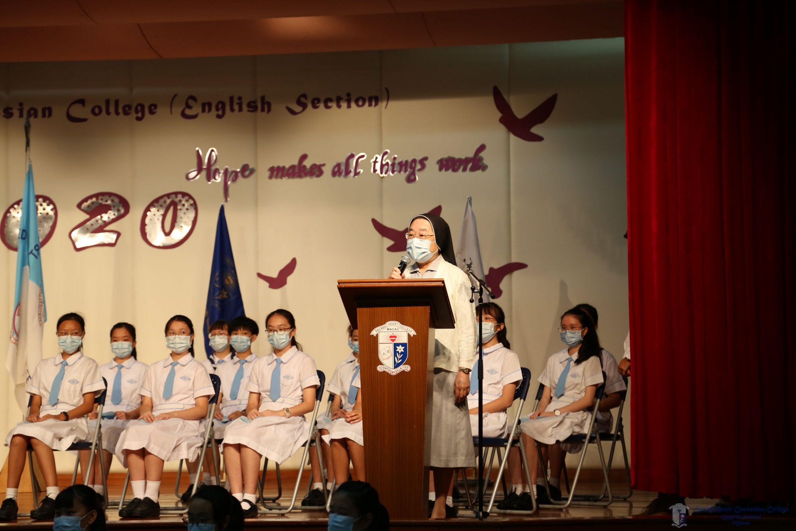 最後,余修女為大家致訓勉詞,表示2020年是特別的一年,大家要珍惜與家人相聚,與同學一起學習的時光。今學年的主題是「希望」,余修女又鼓勵同學們要依靠上主,求衪帶領大家與各領袖生合作,懷着愛與尊重,在逆境中互相扶持,共同令世界變得更美好,更和諧。
