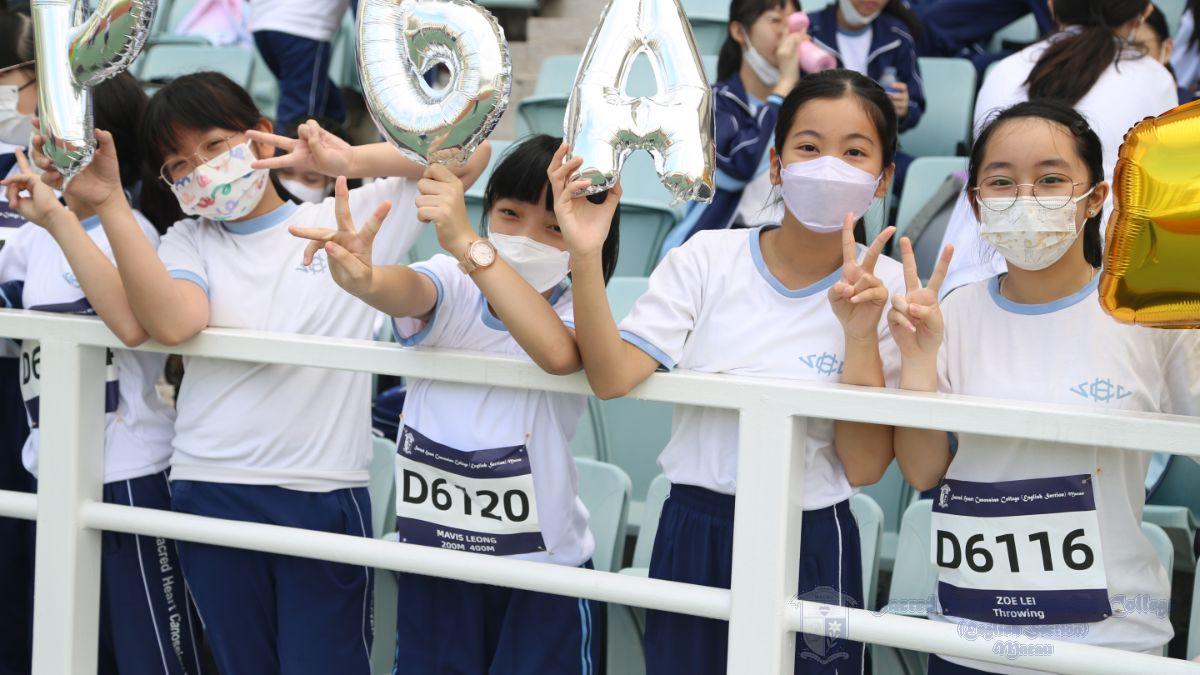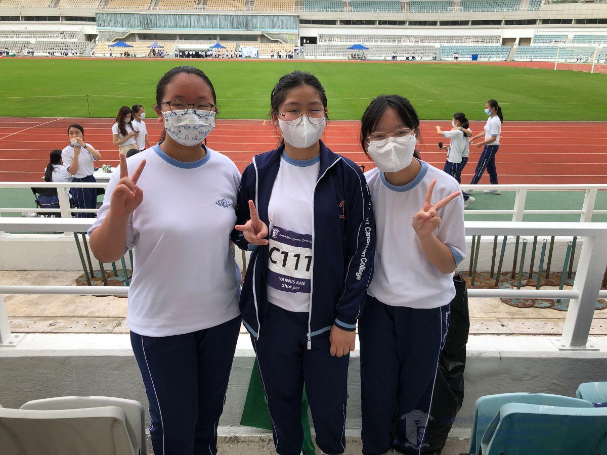 中一甲班Venus U, Yannis Kan和Jasmine Iong同學表示,去年因為疫情影響而無法參加學校運動會,感到很可惜,因此今年能夠作為中一學生再度參與,她們都覺得可以彌補上一年的遺憾。她們回憶起小五那年,因為年紀尚小,只參加過立定跳遠和五十米賽跑,而今年終於可以嘗試更多具挑戰性的項目,例如跳遠、推鉛球、一百米賽跑等。她們都表示,希望未來在比賽場上繼續做好自己,甚至超越學姐們的成就。