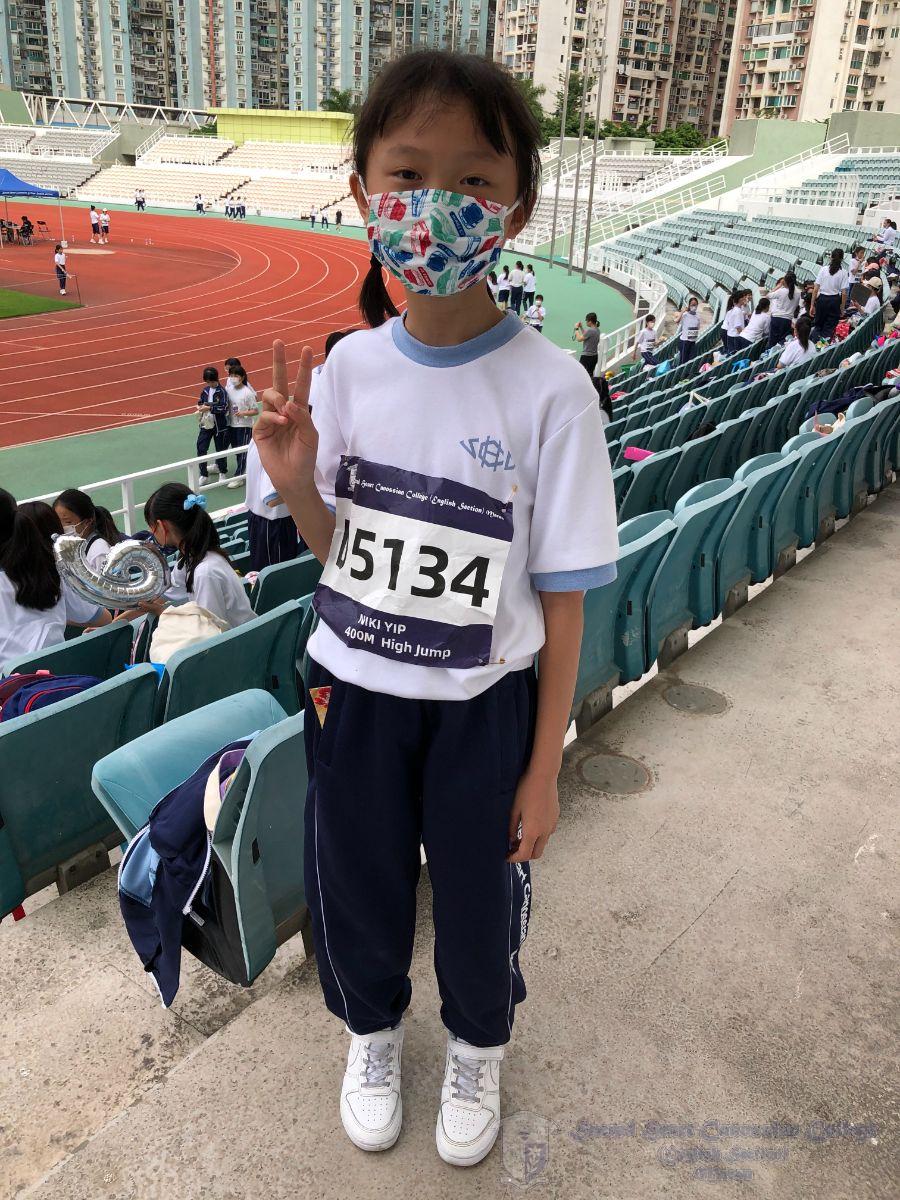 小五甲班Niki Yip同學表示,今年是她第一次到氹仔運動場參加校運會,她參加了跳高和4 X 100接力賽,雖然全部都無法進入決賽,但能夠與同學們一起比賽,她仍然感到很興奮。她表示看到學姐們在賽場上努力爭取打破學校紀錄,也希望自己在未來可以做得更好。她期望升到中學後,能挑戰1500公尺,並表示會為了這個目標,從現在開始努力練習。