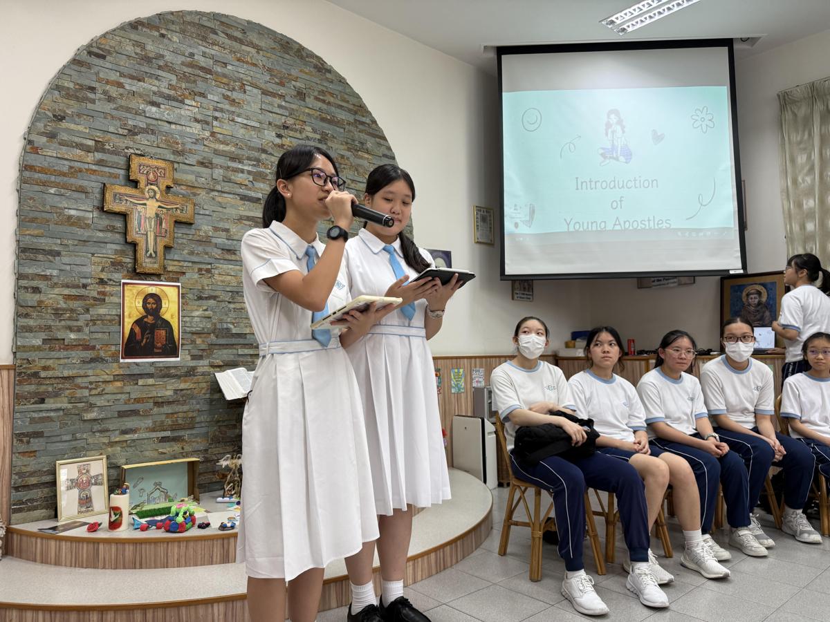The Young Apostles is a Catholic society set up in 1986. Its members include all of the Catholic students of the school. The spirit behind is to live out the gentleness, goodness and sacrificing spirit of Jesus in their daily life. Besides, the Young Apostles serve the Lord by spreading the Good News of God’s unconditional love that He is our loving Father who is always by our side. They take part in organizing religious and formative activities in school and holding weekly meetings.
